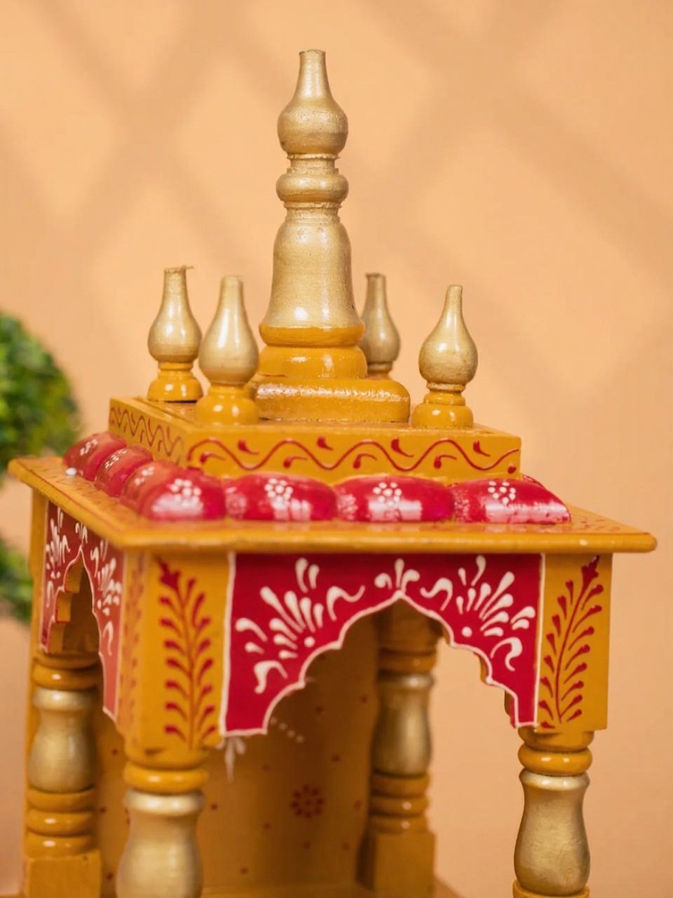 • Handcrafted wooden temple with traditional hand-painted artwork