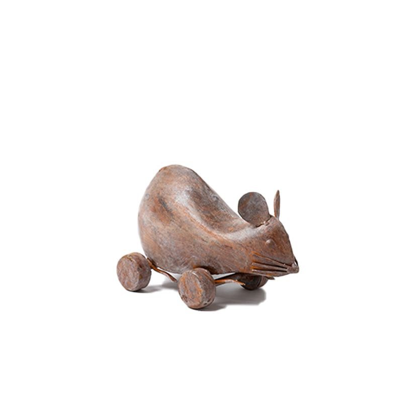 This item is a jodhpur crafts Reclaimed Iron Rat on Wheel Figurine. It is a handcrafted, decorative collectible item made from recycled iron and scrap metal.