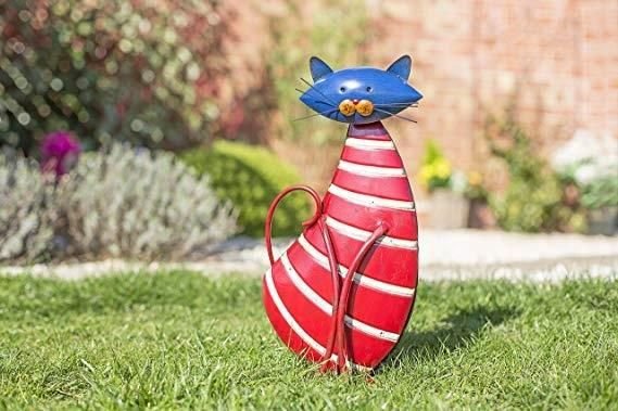 This metal cat figurine is a collectible garden ornament from the brand La Hacienda.
