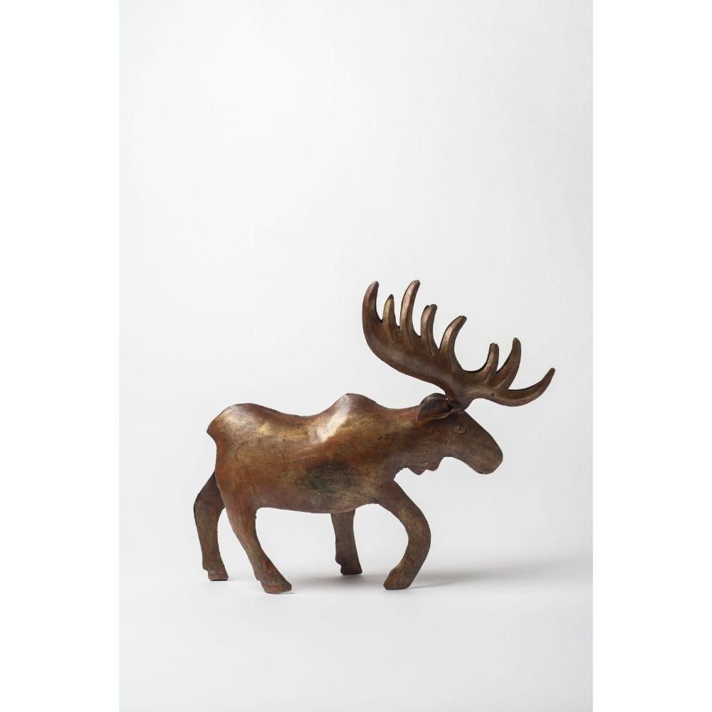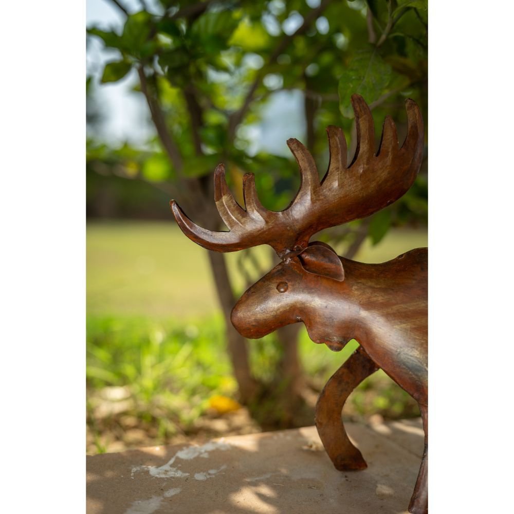 This Decorative Moose Collectible Figurine is a handcrafted, rustic sculpture from Jodhpur crafts Works. Meticulously made by skilled artisans in Rajasthan, India, this piece is crafted from 100% upcycled iron and scrap metal, featuring a rich, antique brown finish that mimics the look of carved wood or bronze.