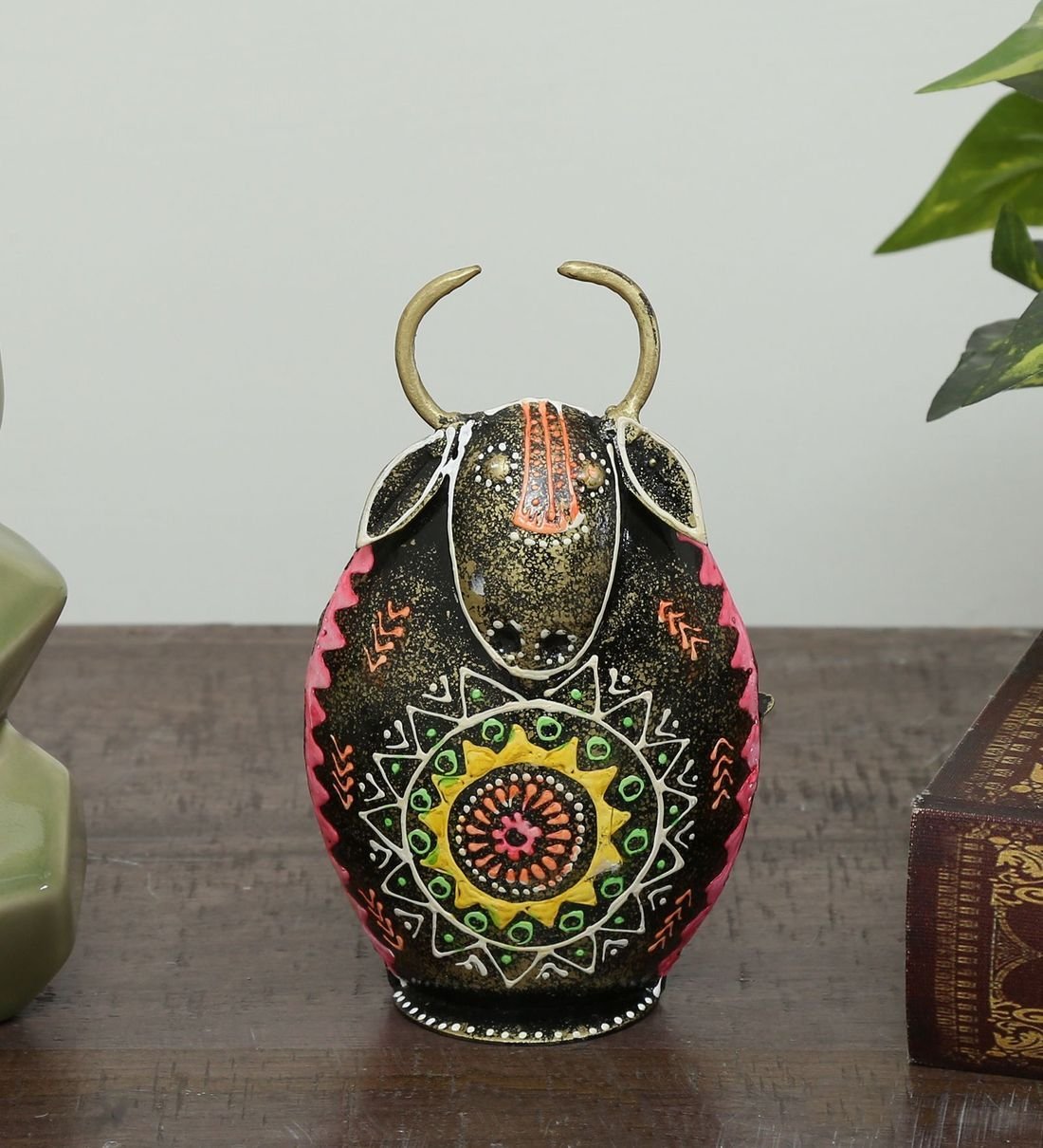 Add a bold artistic touch to your home décor with this Handcrafted Metal Bull Showpiece. Designed with intricate traditional patterns and vibrant hand-painted detailing, this decorative bull figurine beautifully blends ethnic craftsmanship with modern aesthetics.