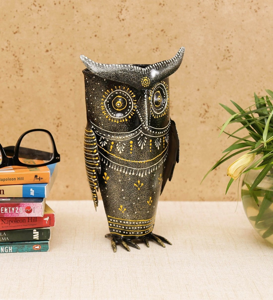 Handcrafted Metal Owl Pen Holder – Decorative Owl Desk Organizer for Office & Study Table