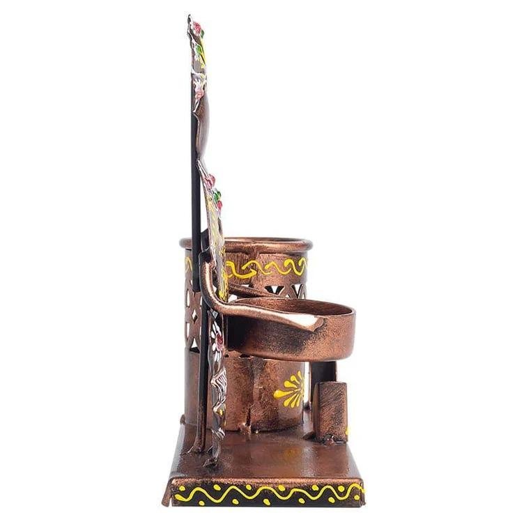 Handcrafted Tribal Lady Metal Pen Holder with Visiting Card Stand