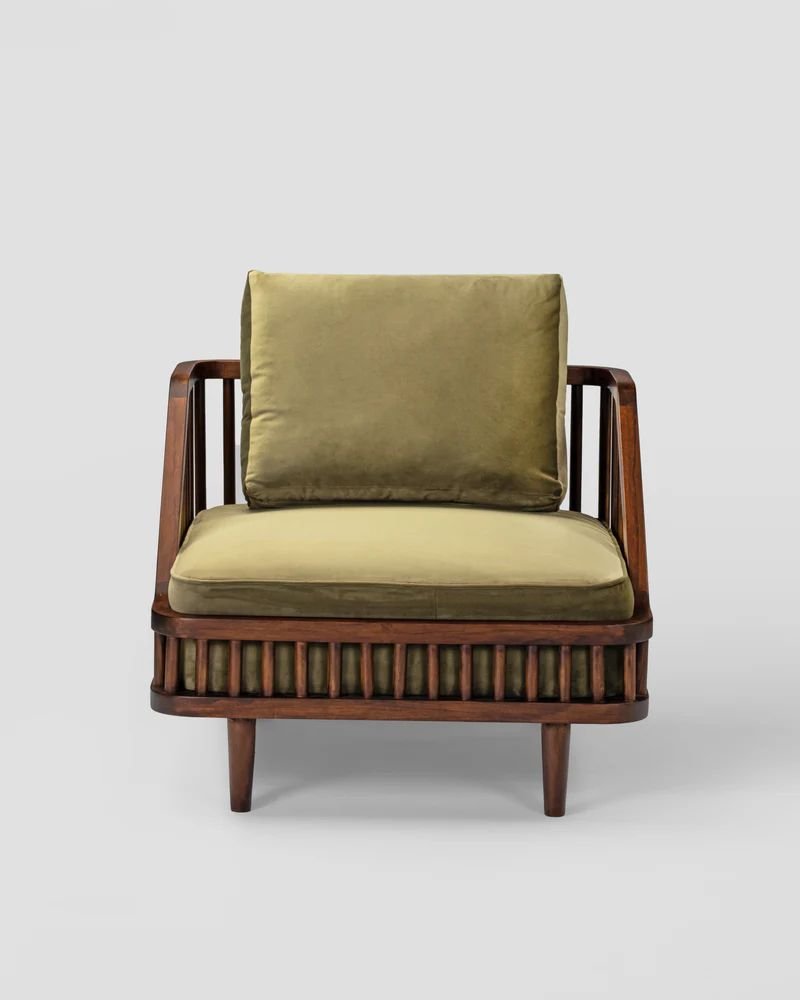 Jodhpur Crafts Forage Spindle Lounge Chair Upholstered Living Room Chairs with Waist Cushion, Reading Armchair for Bedroom Sunroom