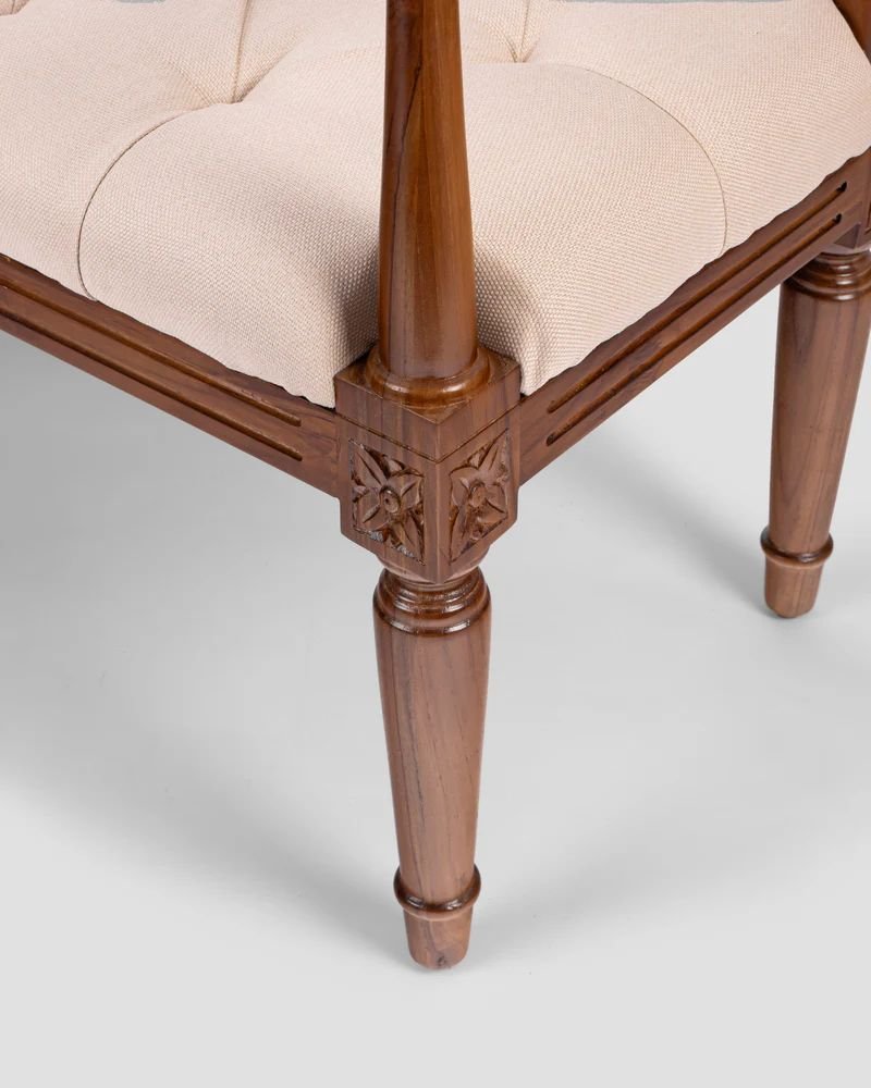 Jodhpur Crafts LUE BONA 44″ Bedroom Bench, Fabric End of Bed Bench, Upholstered French Tufted Ottoman Bench with Carved Dark Brown Wood Legs for Bedroom End of Bed, Living Room, Linen