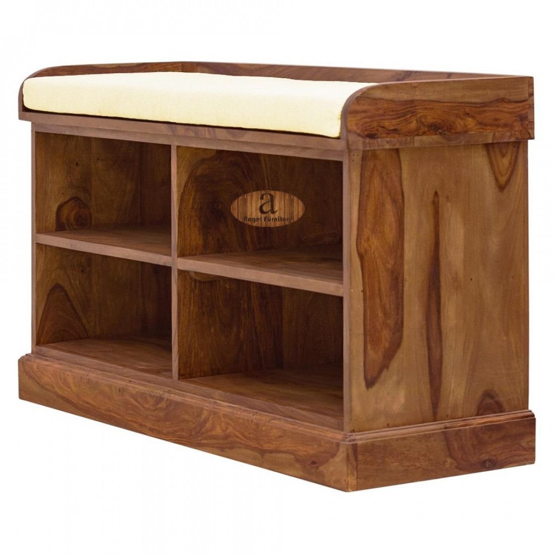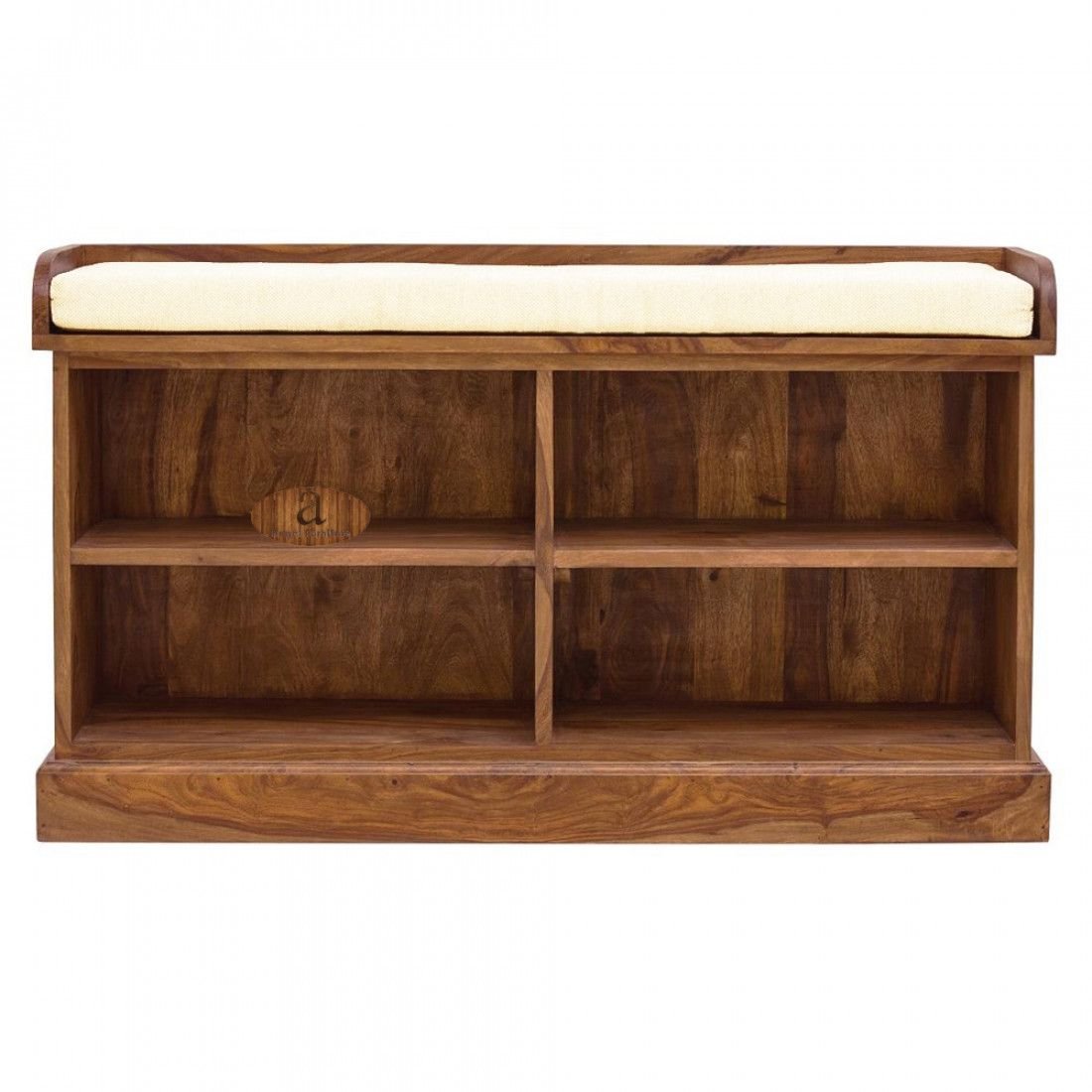 The item shown is the Shoe Rack Organizer , a multipurpose piece of furniture handcrafted from premium solid sheesham wood (Indian Rosewood). It functions as both a sturdy seating bench and an organized storage solution for footwear.
