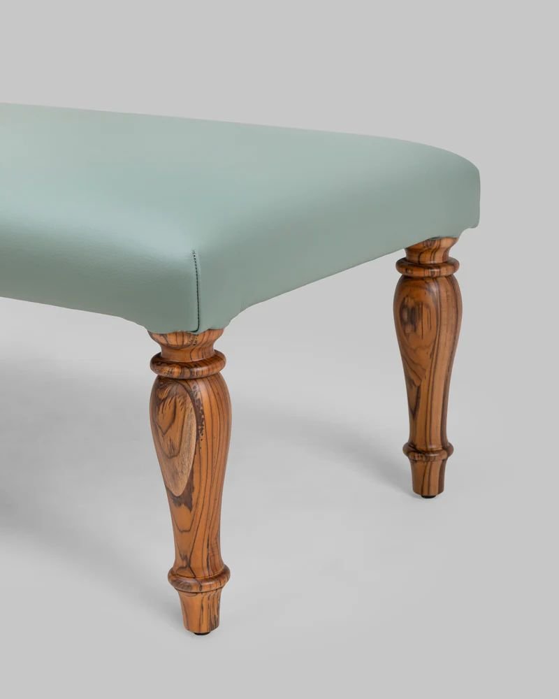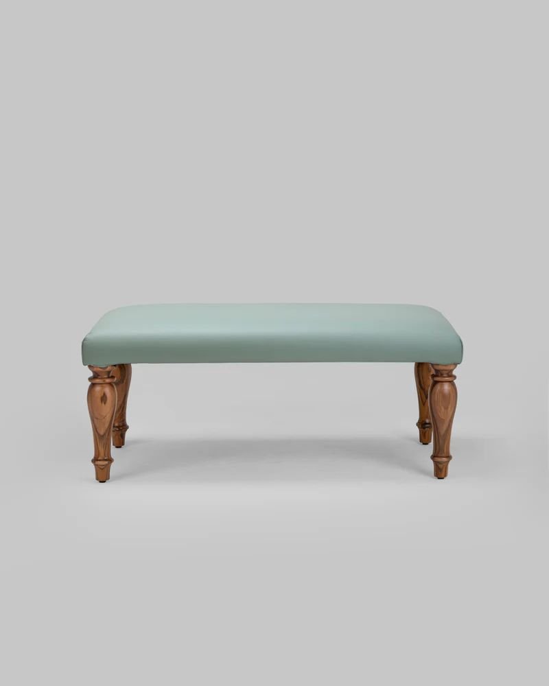 - The word “exquisite” sums up the essence of the EDEN Bench. This regal piece offers both style and purpose, making it a perfect addition to the end of your bed. Upholstered in a regal shade of pale turquoise, the plush seat adds a touch of luxury and invites relaxation.