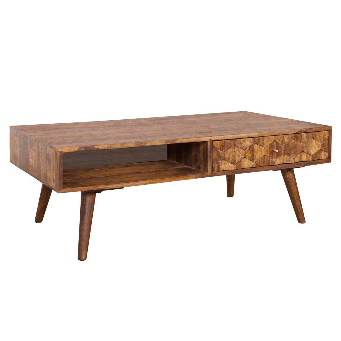 The image shows a modern Sheesham wood coffee table that blends natural wood aesthetics with a contemporary minimalist design.