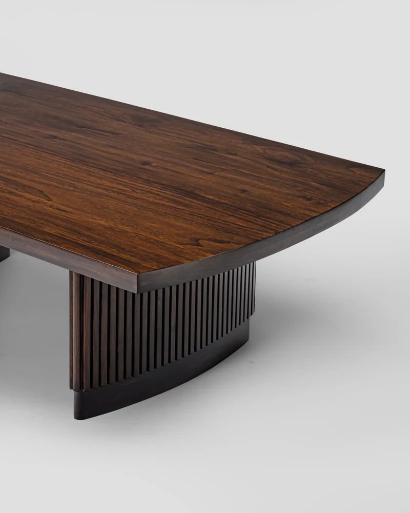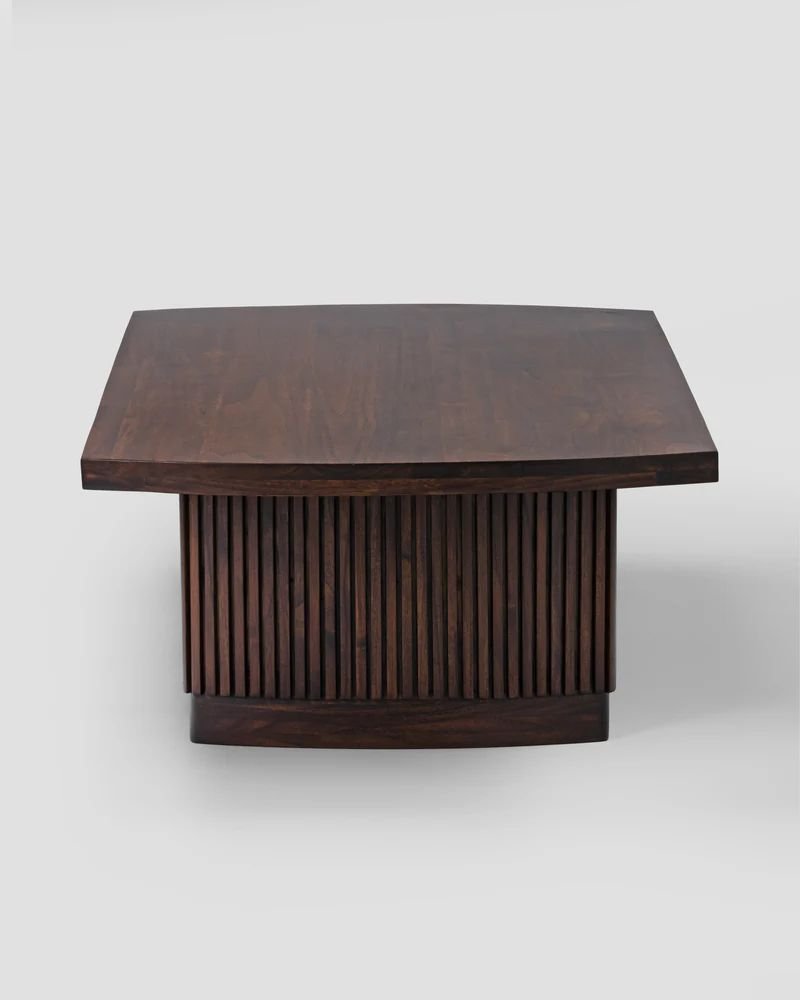 - Design Aesthetic: Blends minimalist modernism with rich textures. The vertical slats of the fluted base add a rhythmic, 3D quality that complements its simple, solid top.