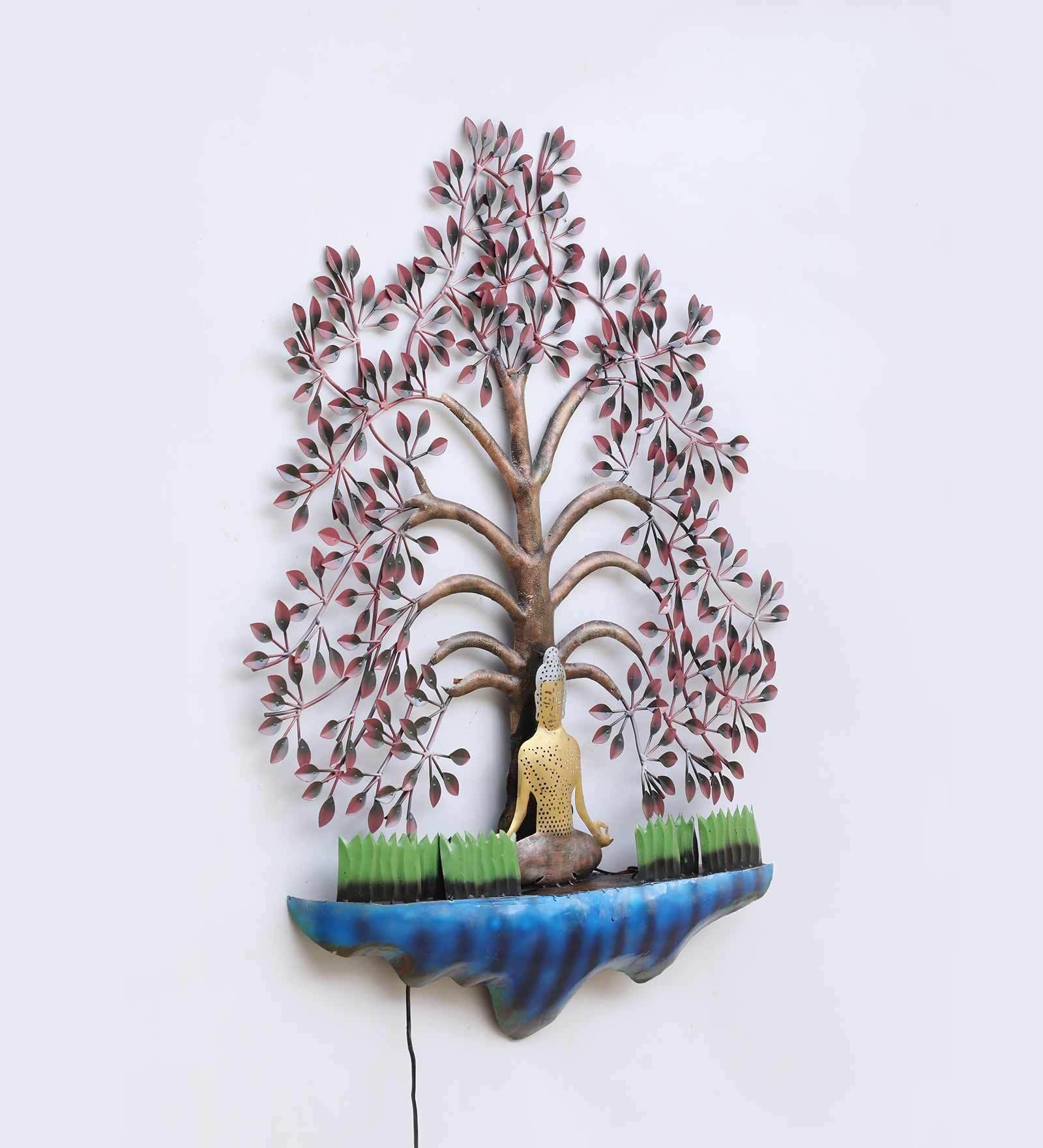LED Buddha Tree Wall Art with Shelf