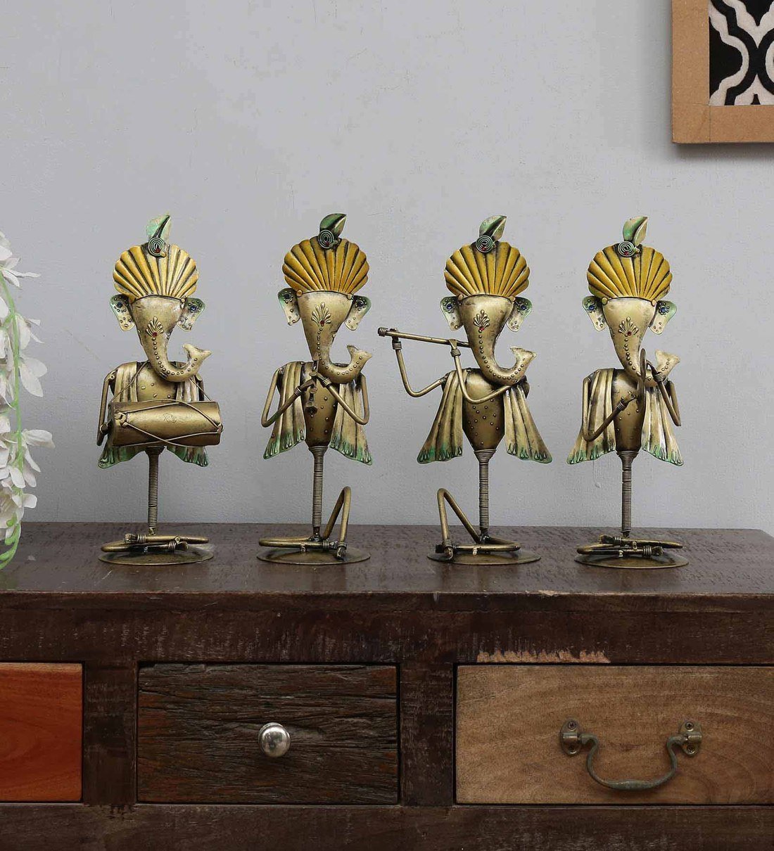 Metal Lord Ganesha Musician Showpiece Set of 4 – Decorative Ganpati Figurines