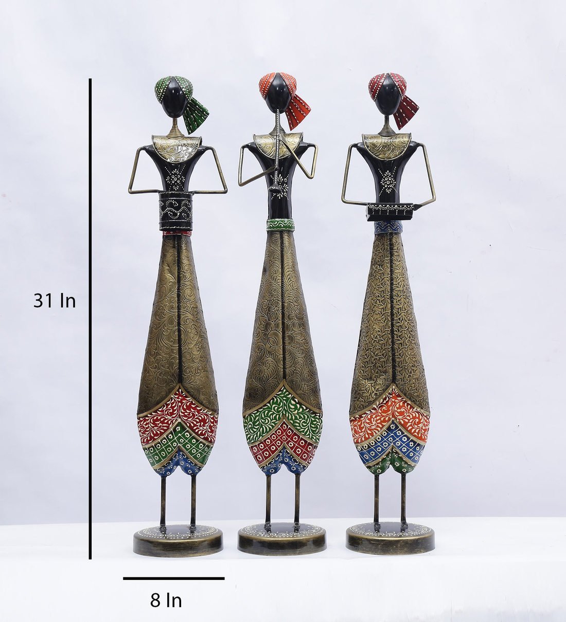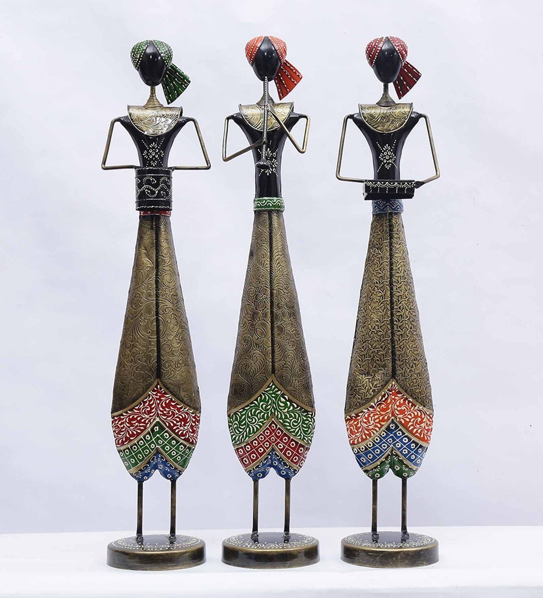 Expertly crafted from high-quality metal and decorated with intricate hand-painted patterns, these figurines bring a unique ethnic charm to any interior space. Perfect for living rooms, hallways, offices, or showcase shelves, these decorative pieces instantly elevate the ambiance of your home. This showpiece set also makes a thoughtful gift for housewarming ceremonies, weddings, festivals, and special occasions.