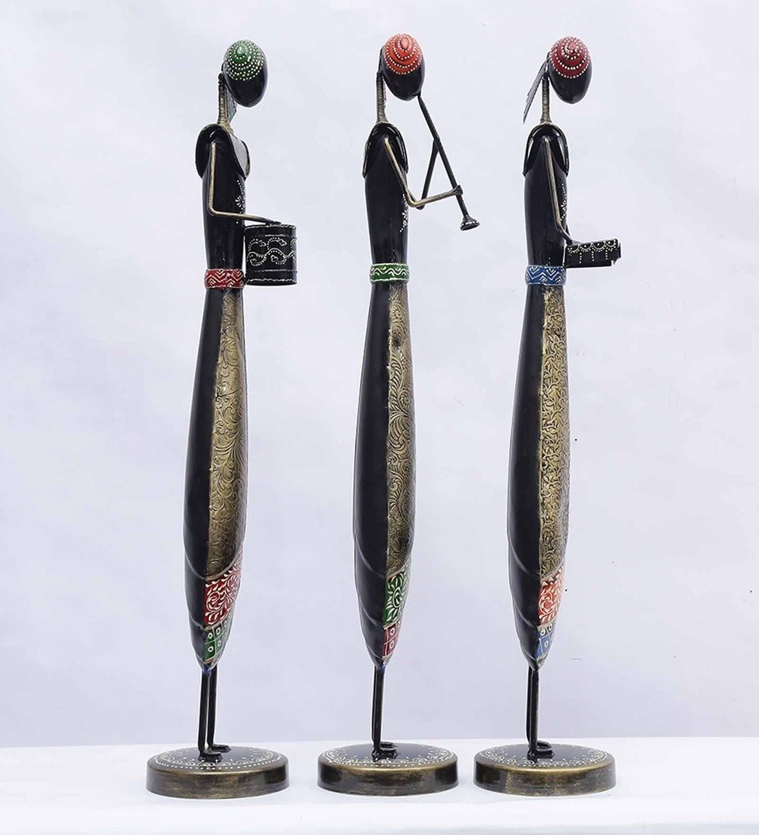Metal Tribal Musician Showpiece Set of 3 – Traditional Folk Art Decorative Figurines