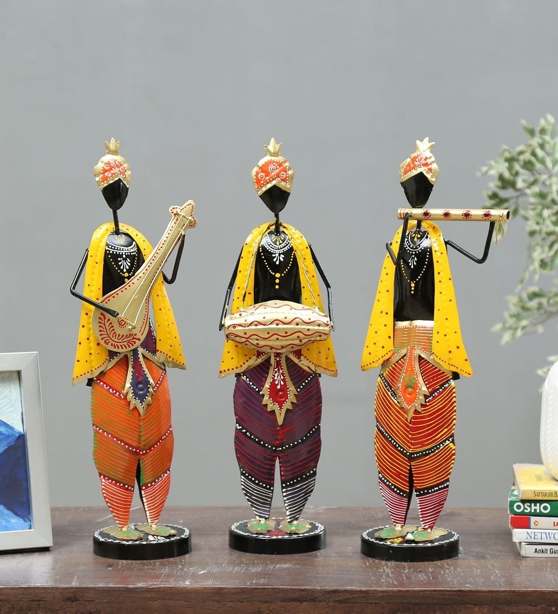 Crafted from durable metal and carefully hand-painted with intricate patterns and bright ethnic colors, these figurines add a unique cultural charm to any interior space. Perfect for living rooms, office desks, shelves, or center tables, this showpiece set enhances the aesthetic appeal of both modern and traditional home decor. It also makes a thoughtful gift for housewarming, festivals, weddings, and special occasions.
